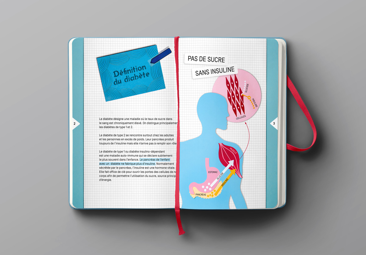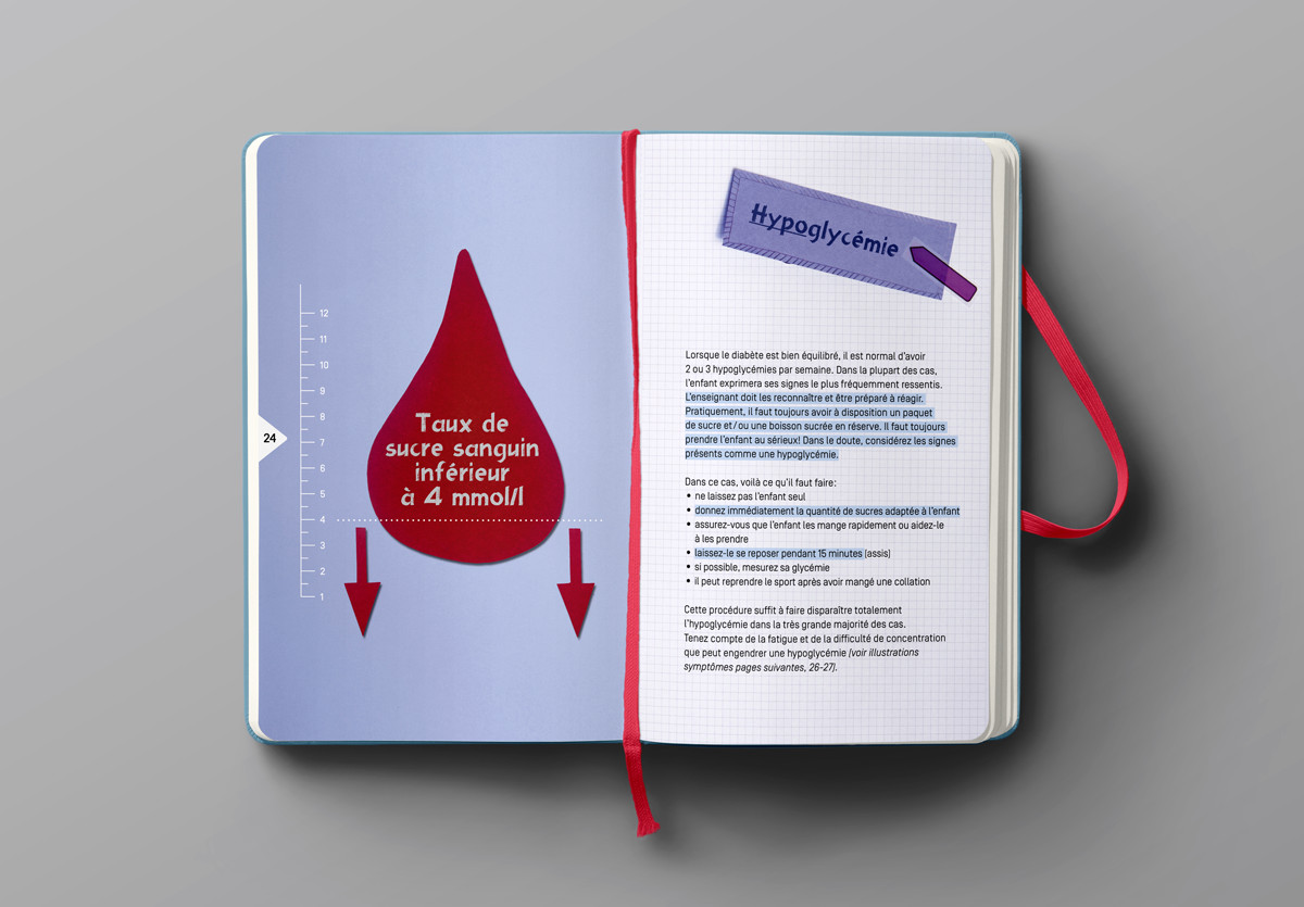 Élaboration d’une brochure pour expliquer le diabète dans les écoles et les garderies. Elle détaille de manière didactique la maladie, ses traitements, son impact sur la vie quotidienne et les signaux d’alerte que peuvent présenter les jeunes diabétiques.