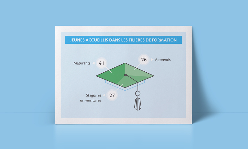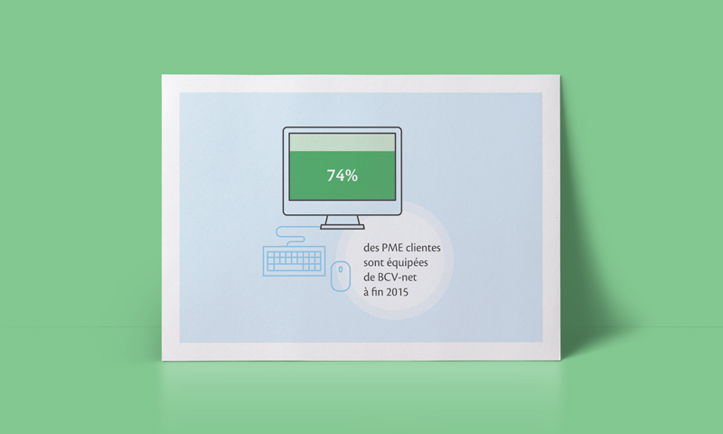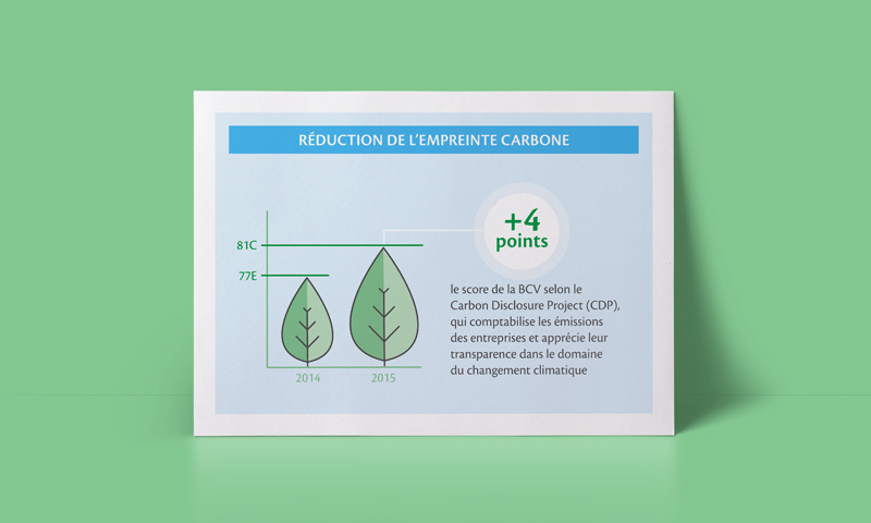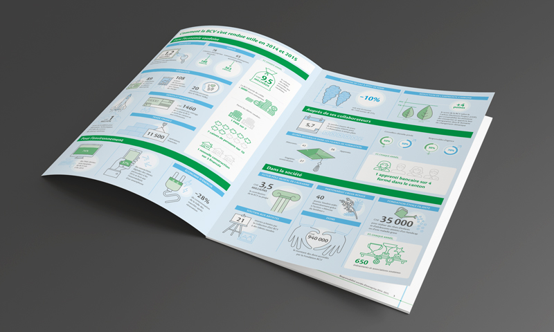 Création d’infographies résumant la contribution de la BCV à l’activité locale en 2014-2015. Ces infographies sont publiées dans le cadre du rapport de responsabilité sociale d’entreprise (RSE).
